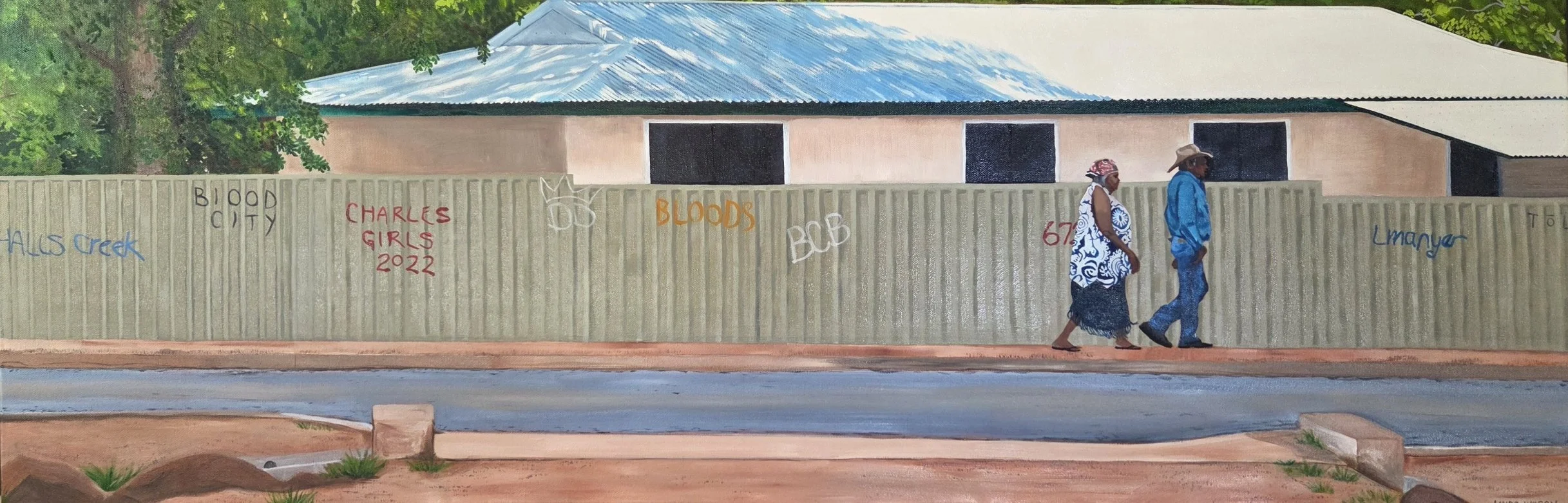 ‘Walking to Woolies’ - Oil on Canvas - 117cm x 40.5cm